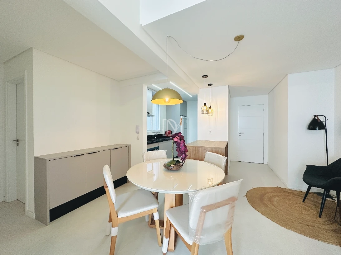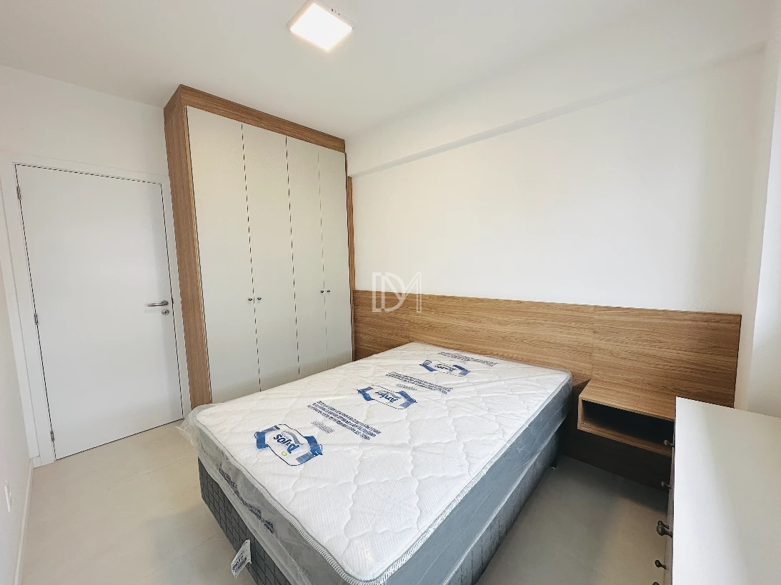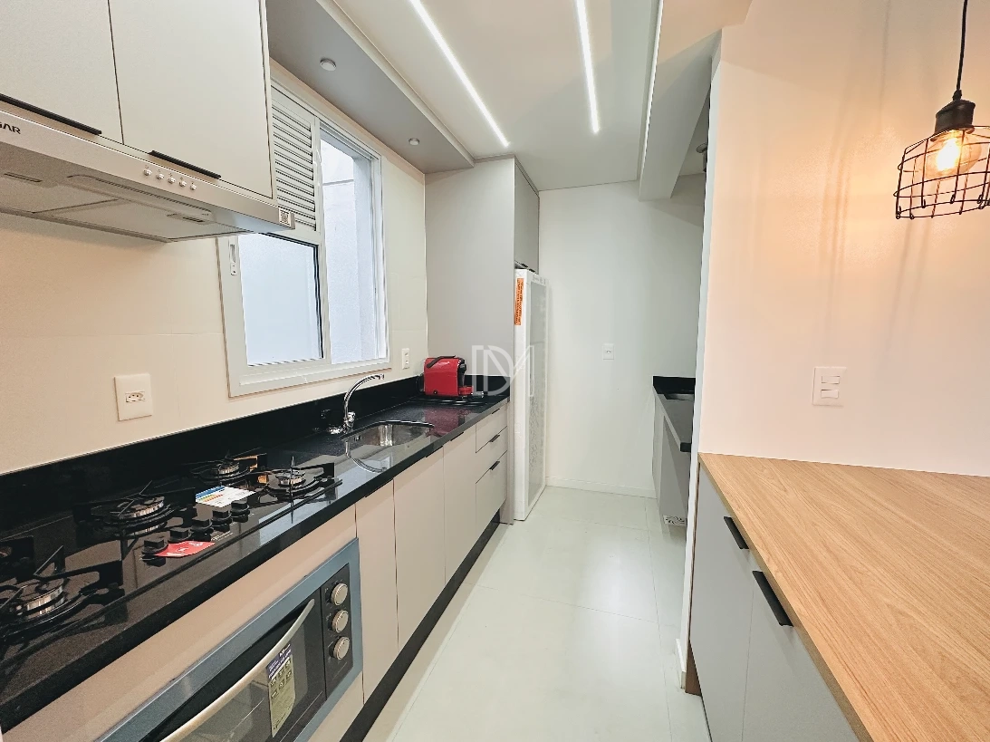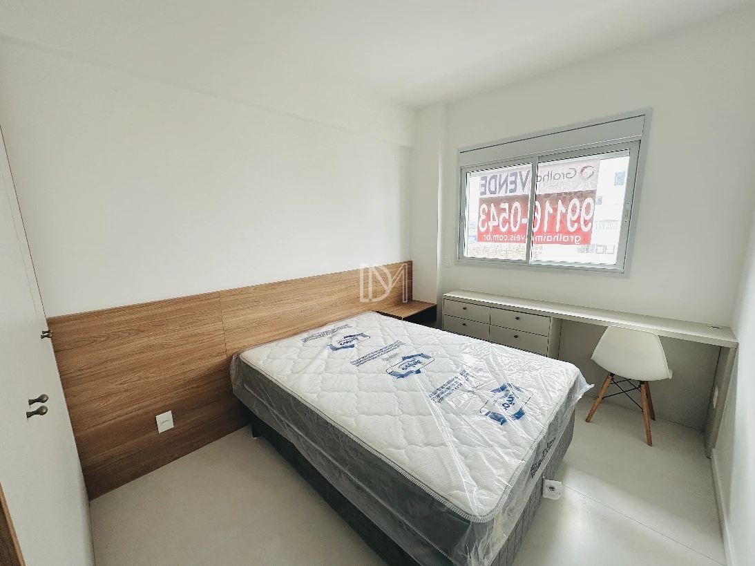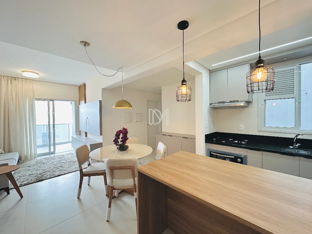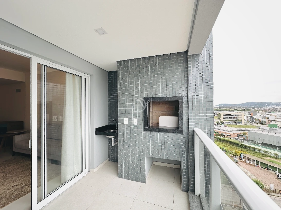Apartamento totalmente mobiliado na Pedra Branca, com 77m² de área privativa, 2 dormitórios sendo suíte, living integrado com a cozinha, sacada ampla com churrasqueira e vaga de garagem coberta.