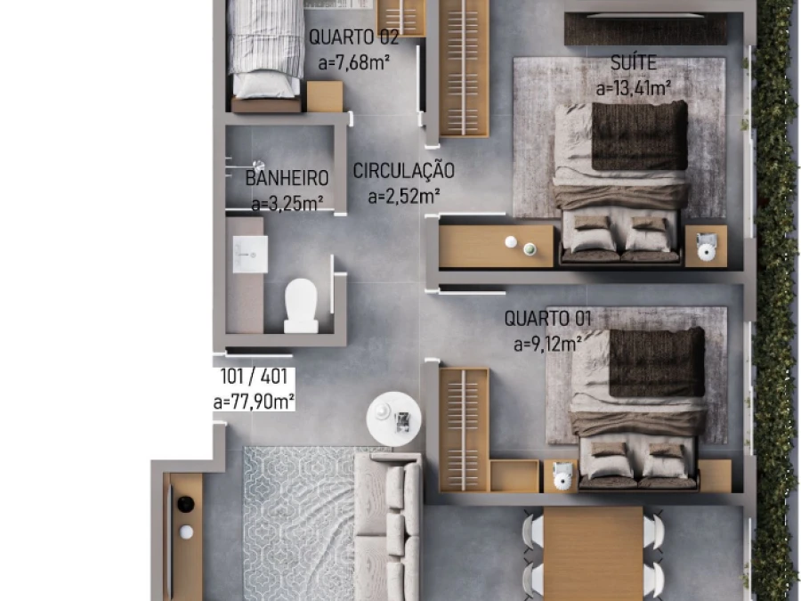 FINAL 01 - 3 dormitórios, sendo 1 suíte - 1 vaga - Área privativa: 77,90m²