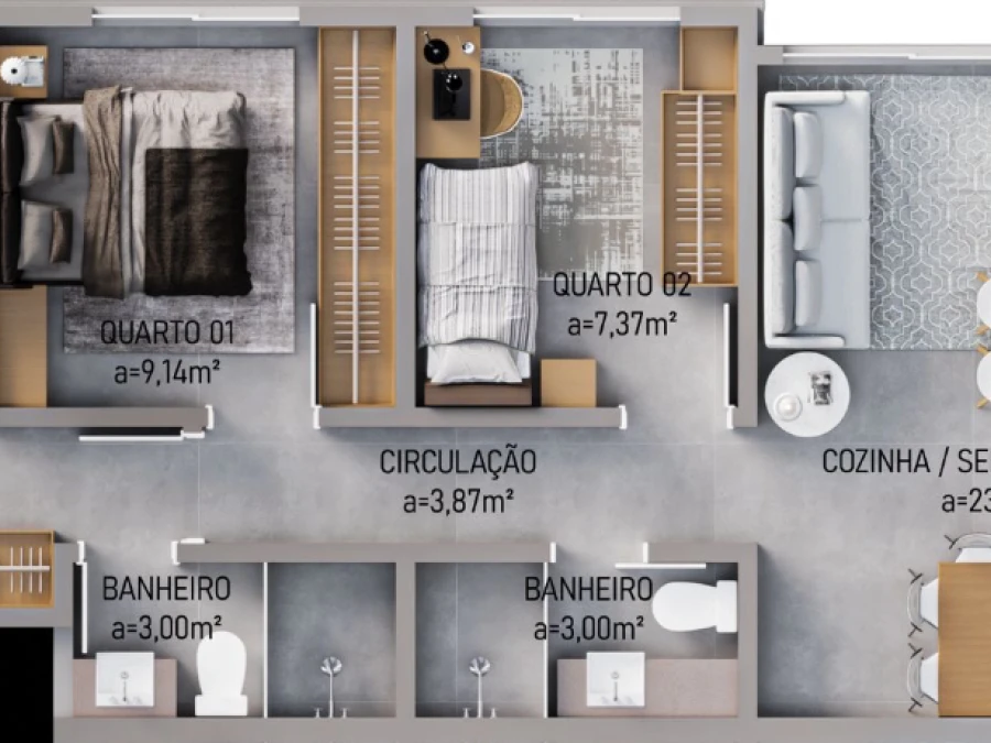 FINAL 02 - 3 dormitórios, sendo 1 suíte - 1 vaga - Área privativa: 71,58m²
