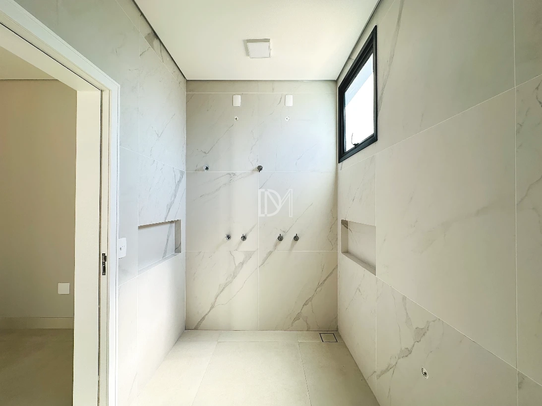 Acabamento com piso porcelanato em grande formato, persianas integradas e automatizadas, esquadrias pretas, espera para ar condicionado em todos os ambientes, forro em gesso e espera para agua quente.