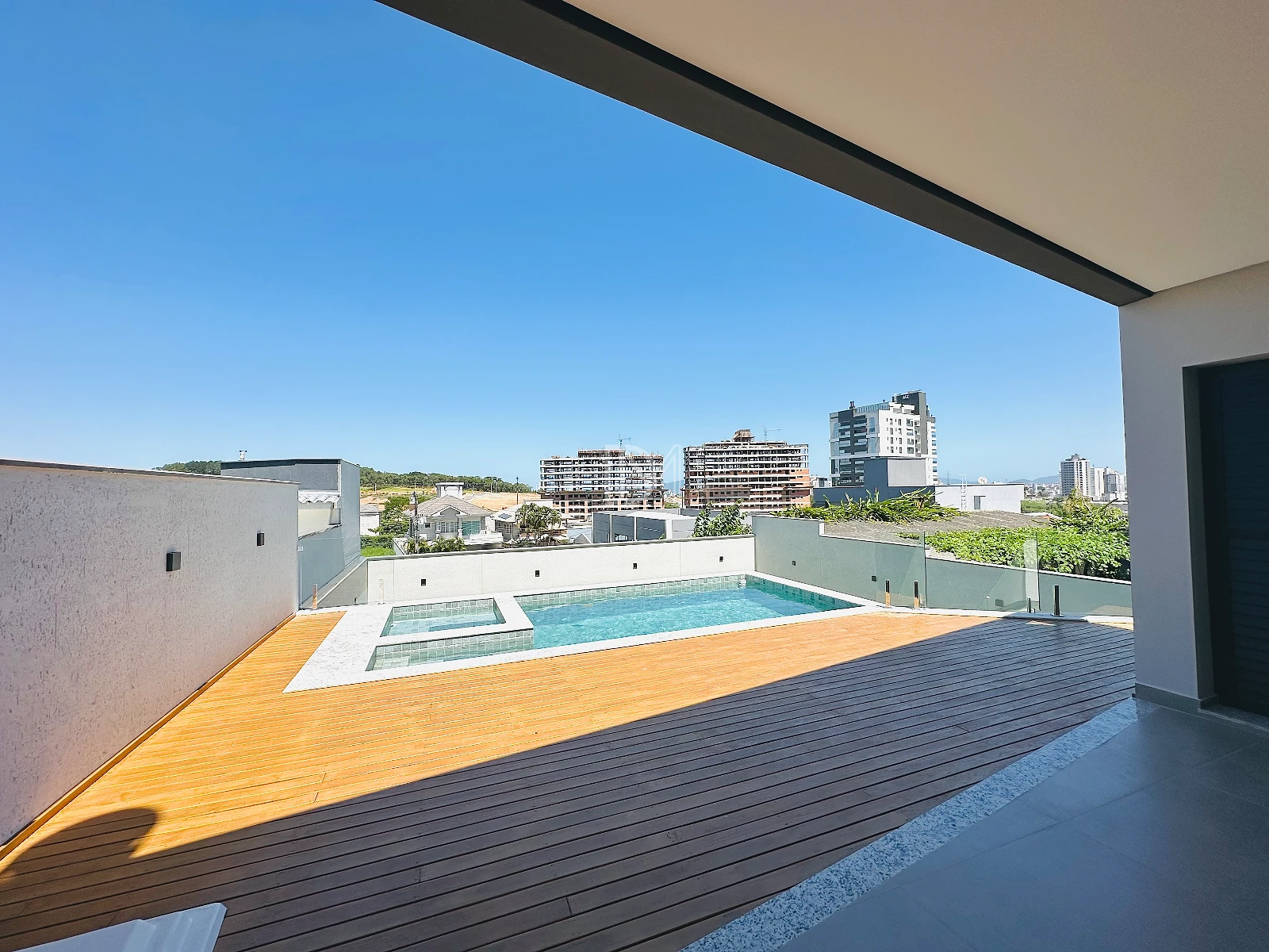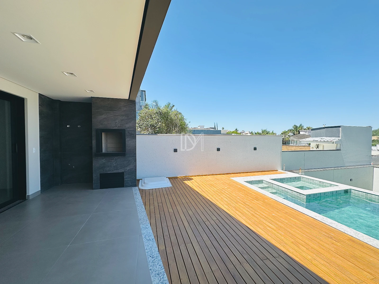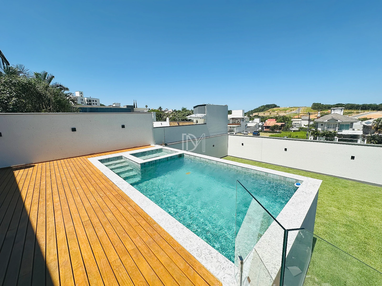 O imóvel possui 3 dormitórios, sendo 1 suíte com closet, sala de estar e jantar amplas com cozinha integrada, espaço gourmet ao lado da piscina, área de serviço e 2 vagas de garagem cobertas.