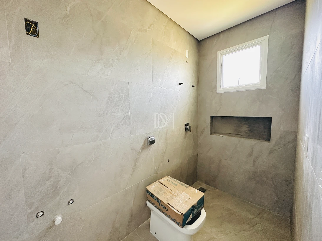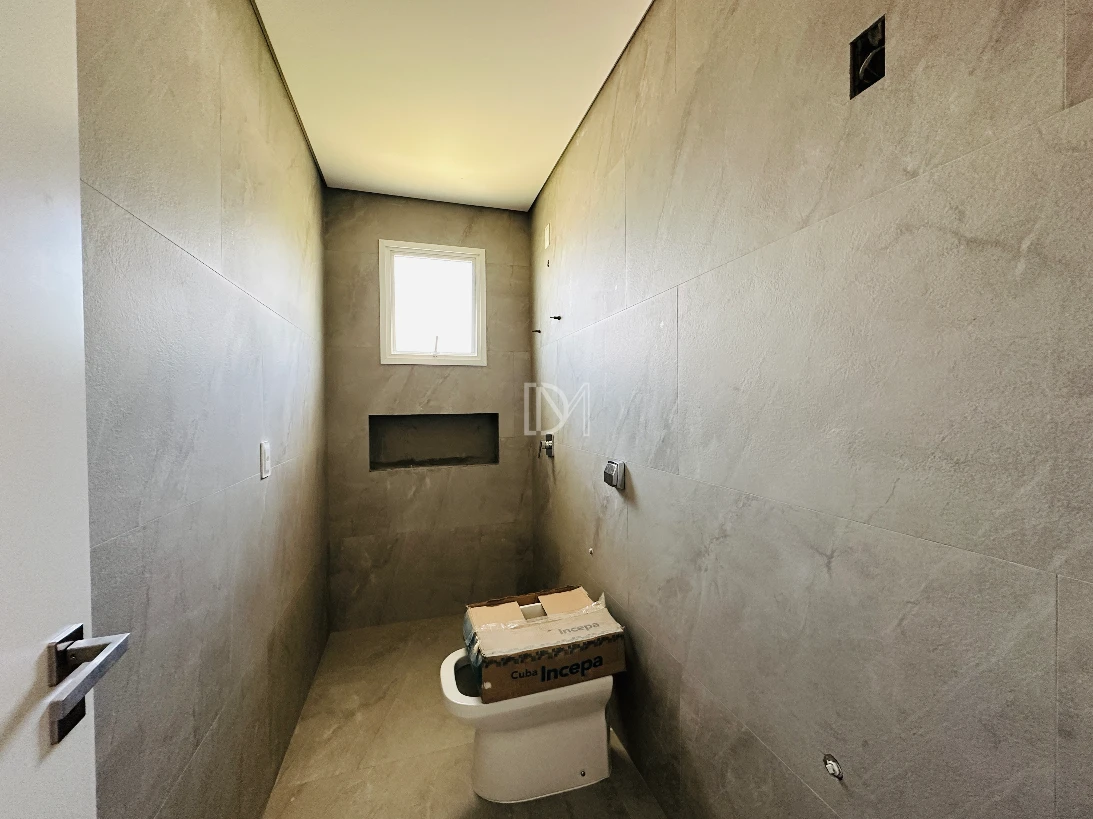 Os acabamentos da casa são de alto padrão, com porcelanato em grande formato (1,20mx1,20m) em toda a área social, vinílico nos dormitórios, persianas integradas e elétricas, forro de gesso em todos os ambientes e aquecimento solar.