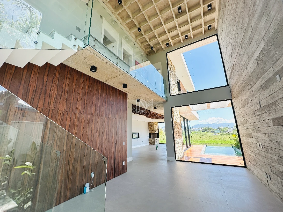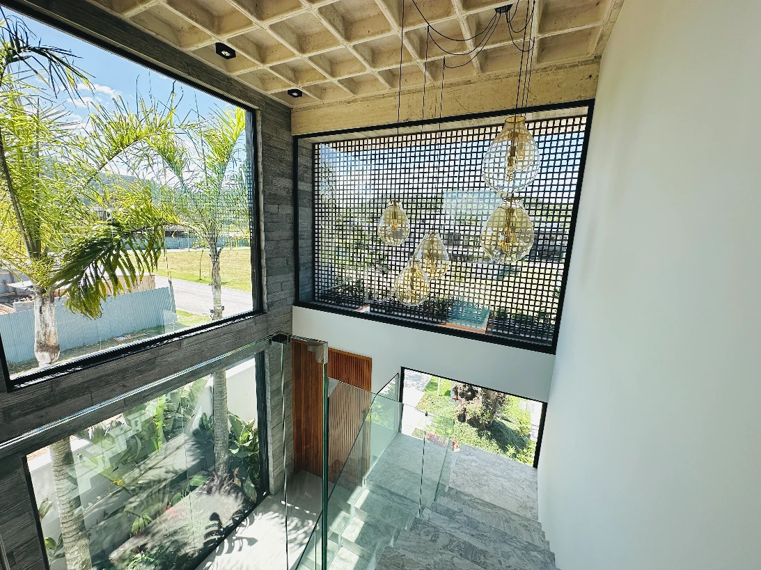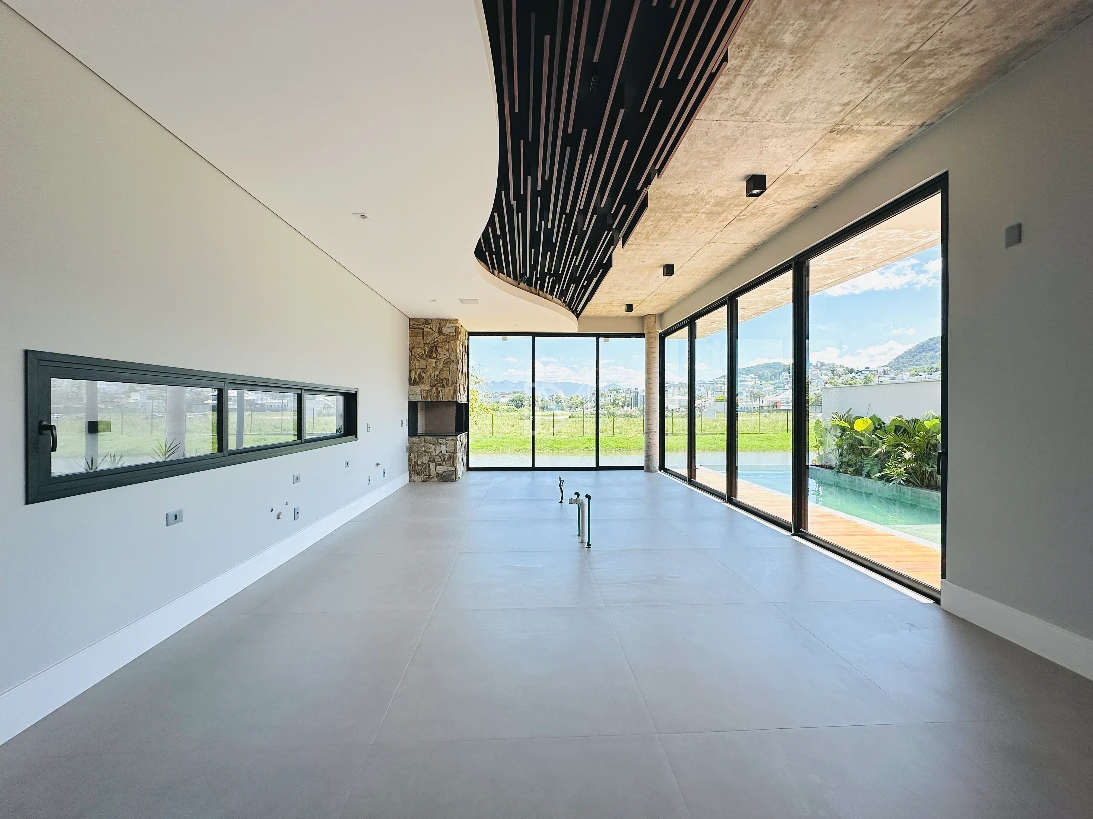 - Sala de estar com pé direito duplo e esquadrias piso-teto