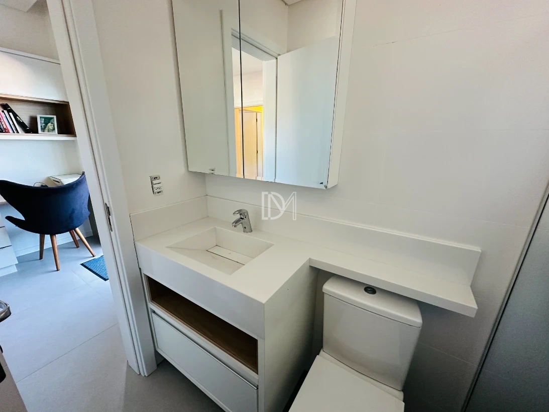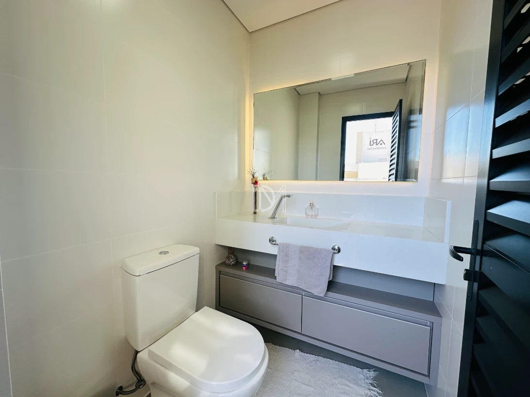 Na parte social, a cobertura conta com sala de estar, sala de jantar, cozinha integrada com ilha e lavabo.