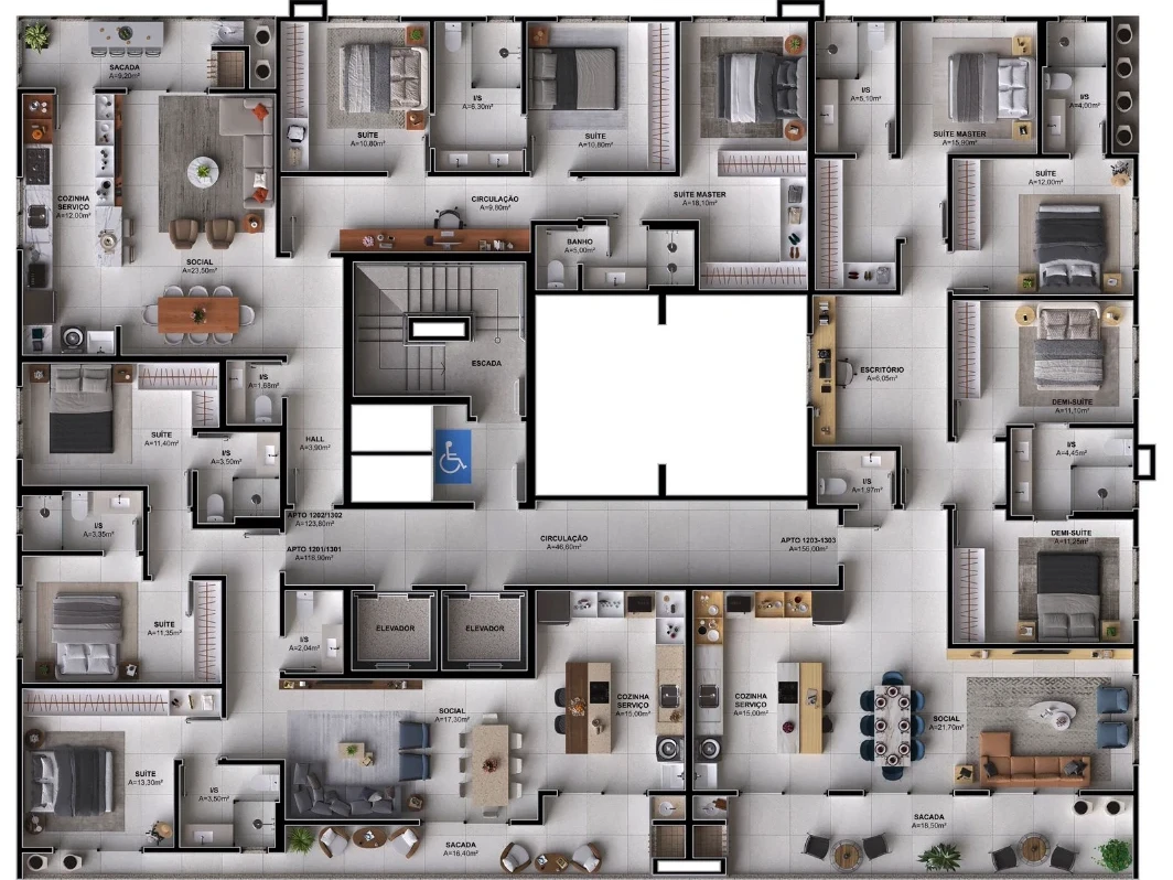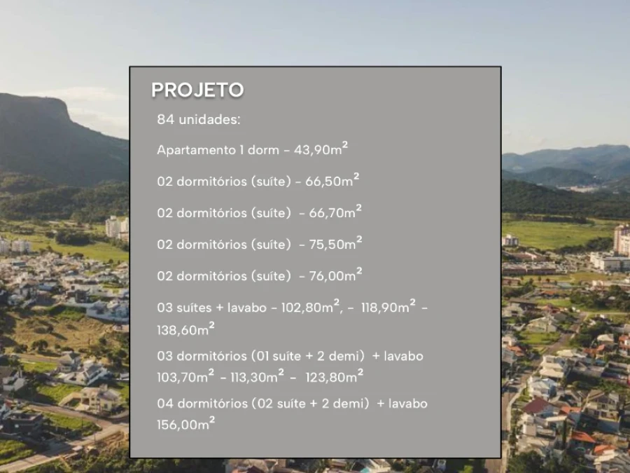 Com 84 unidades, o empreendimento oferece opções de 1 a 4 dormitórios.