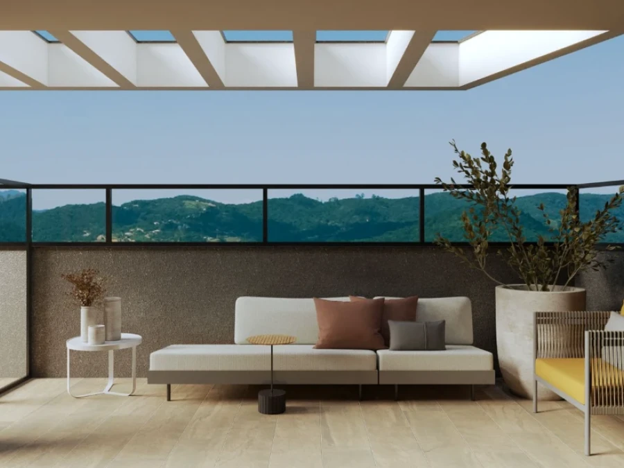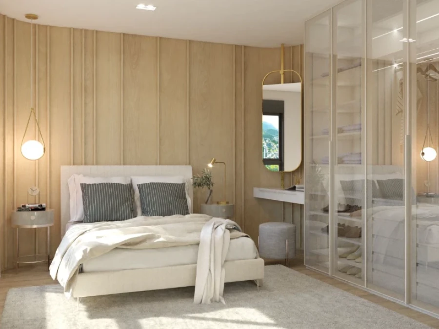 OS APARTAMENTOS com Fechadura eletrônica na porta de entrada, churrasqueira a carvão e pia, Apartamento com 100% teto rebaixado em gesso, Piso porcelanato retificado, Infraestrutura para aquecedor de água a gás, Piso vinílico nos dormitórios, Infraestrutura para A/C tipo split sala e quartos, Todos banheiros com janelas externas, Laje Técnica para instalação de A/C, Portas e rodapés na cor branca, Acabamento paredes com massa corrida, Chuveiros com sistema monocomando, Persianas automáticas nos dormitórios, Garagem com hobby box, Esquadrias na cor preta. Nicho nos banheiros, Antena coletiva, Lajes com atenuante acústico.