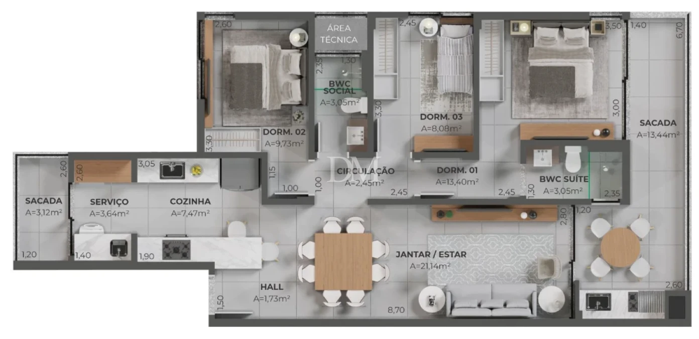 • Apartamentos 2 e 3 dormitórios todos com ventilação natural;